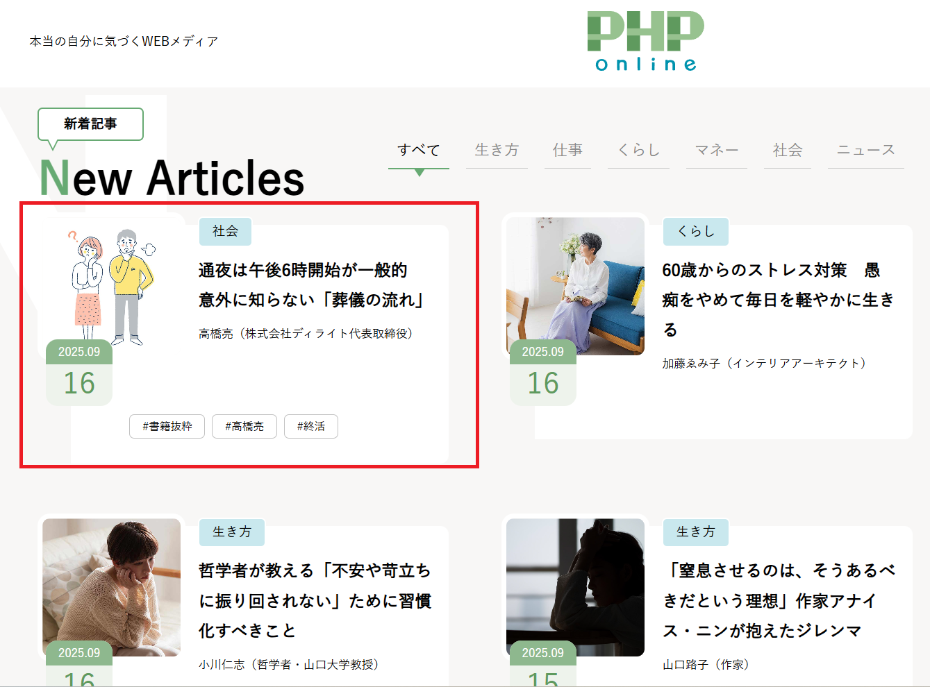 PHPオンラインに代表・高橋亮の記事『通夜は午後6時開始が一般的 意外に知らない「葬儀の流れ」』が掲載されました