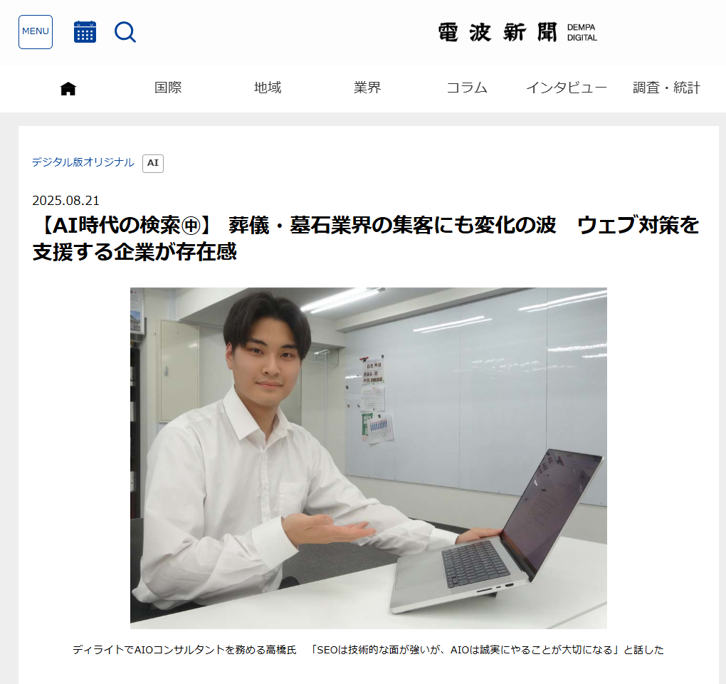 電波新聞デジタルにて、ディライト髙橋丈太郎が「AI時代の検索対策」について語りました