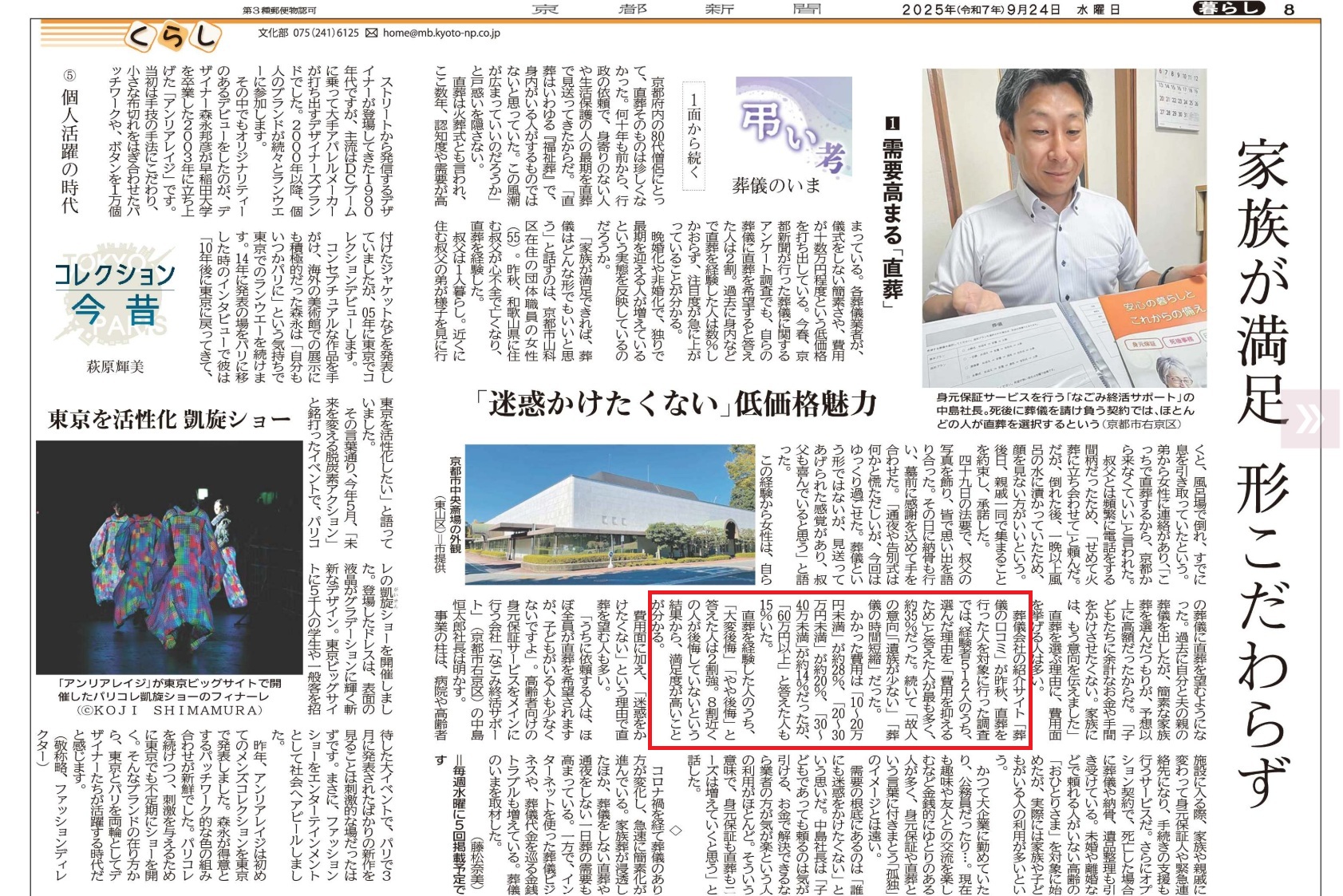 サンデー毎日(9月7日号)に「葬儀の口コミ」の企画「喪主宣言」が掲載されました