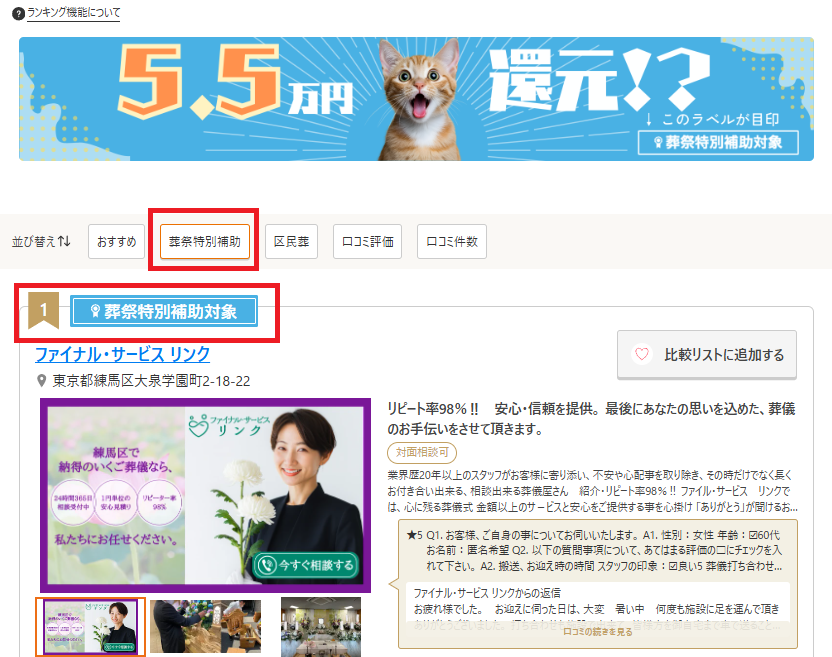 【機能追加】「葬儀の口コミ」に「葬祭特別補助」検索機能をリリースいたしました